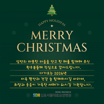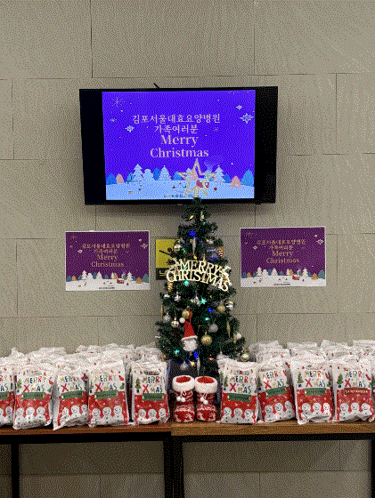 안녕하세요. 김포서울대효요양병원입니다. 따뜻한 나눔과 웃음이 가득했던 김포서울대효요양병원 크리스마스 행사 소식을 전해드립니다. ![]() 김포서울대효요양병원은 다가온 크리스마스를 맞이하여 따뜻한 겨울을 보낼 수 있도록 담요를 준비했습니다. ♥ 이번 크리스마스 행사는 환우분들께 즐거운 추억을 선물함과 동시에, 직원들 또한 서로를 돌아보고 감사함을 나누는 뜻깊은 시간이었습니다.♥ 앞으로도 김포서울대요요양병원은 환우분들께 일상속에서 소소한 행복과 따뜻함을 느끼실 수 있도록 다양한 프로그램과 행사를 꾸준히 이어가겠습니다. 모두 건강하고 행복한 연말 보내시길 바랍니다♥ 감사합니다.